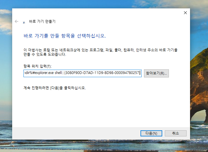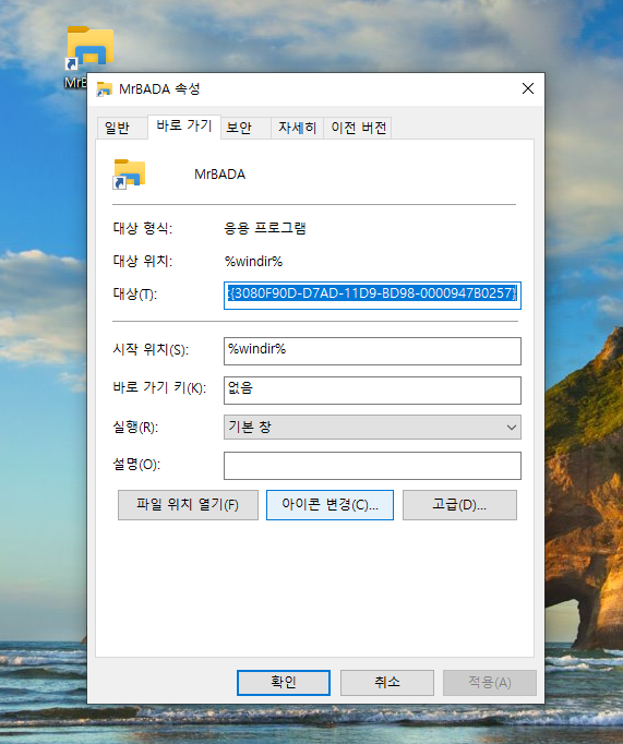 윈도우 10 에서 바탕화면 바로가기 만들기