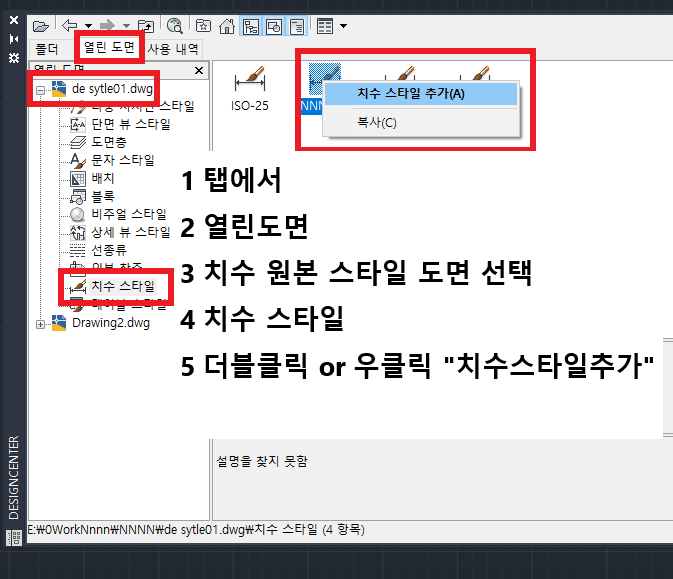 치수스타일을 더블클릭하거나 우측 마우스 클릭후 치수스타일 추가 하기